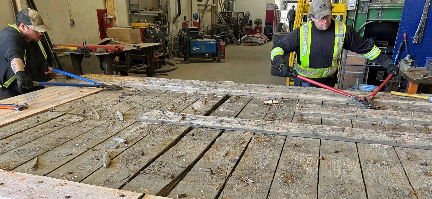 With over two decades of experience, we excel in mobilizing, demobilizing, sorting, washing, grading, and managing every aspect of an access mat’s life cycle. Our expertise includes proficiently repairing mats, replacing damaged or worn-out boards, and recycling usable lumber from mats ready for disposal. This strategic approach not only increases mat lifespan but also significantly reduces lumber waste, contributing to a substantial reduction in our carbon footprint by minimizing landfill waste.